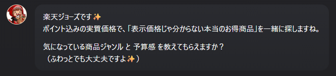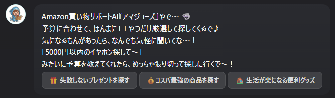 AIツールをもっと身近に、もっと上手に。AI-Jouzuのツールは誰でも簡単かつ便利に!がテーマです。ブラウザでそのまま使用可能です。新しい記事Portfolio1週間で院内の問い合わせが激減。職員のための情報共有ポータルサイト導入事例生成AIツール【GPTs紹介】ビルゲイツに買い物相談したらシンプルに斬られた話PortfolioAmazonブラックフライデー、何買う?迷ったら「AIコンシェルジュ」10秒でおすすめ商品を提案!楽天ジョーズ楽天市場の商品を「ポイント還元・SPU」まで含めた「実質価格」で比較し、今いちばんお得な商品を提案する買い物サポートアプリです。 🔍 キーワードを入力... (例: 5000円以下のワイヤレスイヤホン) 提案 AmaジョーズAmazonの商品をユーザーの要望を汲み取って提案。不要な検索コストを削減します。 🔍 キーワードを入力... (例: 5000円以下のワイヤレスイヤホン) 提案 記事を読み込んでいます... 前へ 1 / 1 次へ Post Share LINE URLコピーauthor