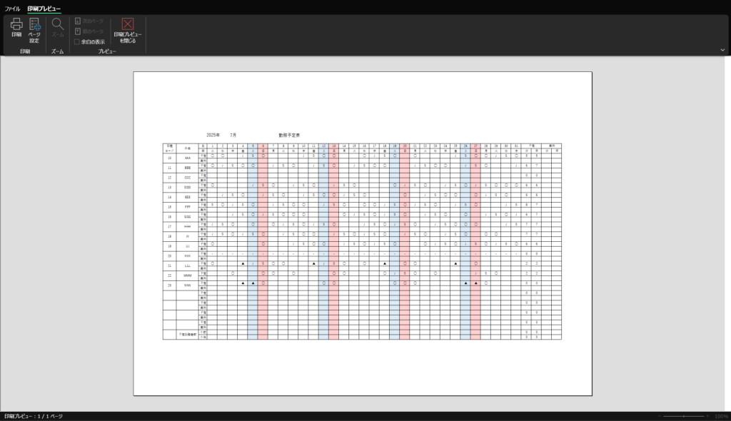 勤務表シート